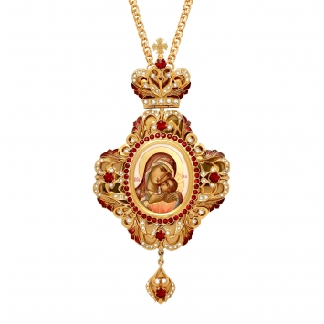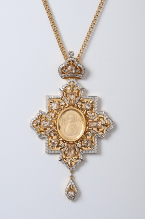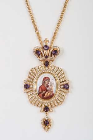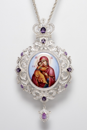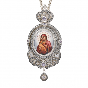 Панагия №1415 / Фианиты / золочение / серебро финифть, эмаль Владимирская БМ (УИН)