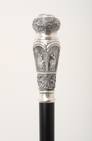 Посох №14 неразборный серебро чеканка, с литьевыми евангелистами серебро (УИН)