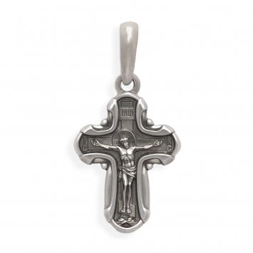 Крест мощевик большой ручная гравировка, литьевые лики №3 серебро (УИН)