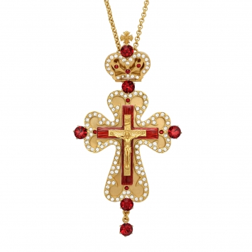 Крест наперсный №49 / золочение / серебро литьевое распятие, эмаль (УИН)