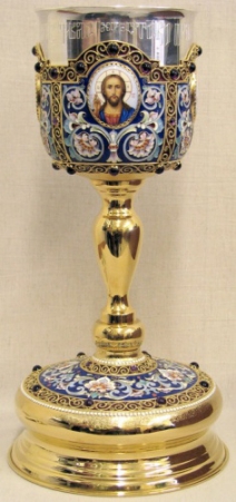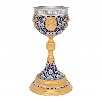 Потир 1.0л 4-литьевых лика, филигрань эмаль "№13 / 7" / золочение / серебряный стакан (УИН)
