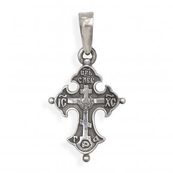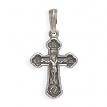 Крест мощевик большой ручная гравировка, литьевое распятие №14 серебро (УИН)