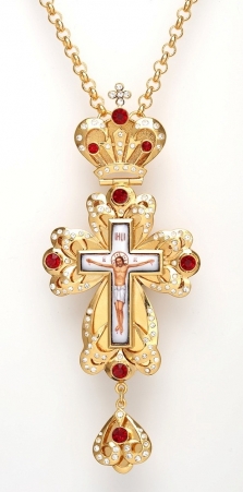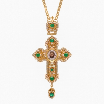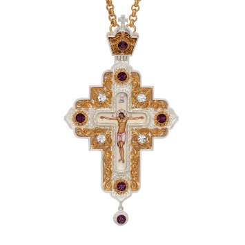 Крест архиерейский №1524 / Фианиты / золочение / серебро финифть перламутр (УИН)