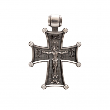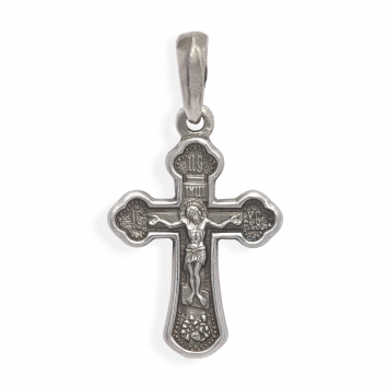 Крест мощевик большой ручная гравировка, литьевое распятие, эмаль №6 серебро (УИН)