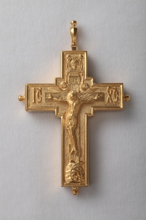 Крест архиерейский №1542 литьевое распятие / золочение / серебро (УИН)