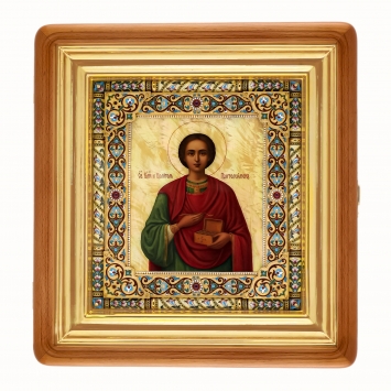 Икона живописная в серебряном окладе 24*30 / киот / Пантелеимон (УИН)