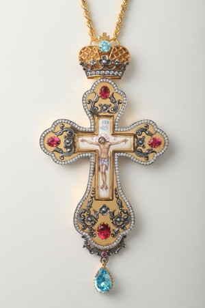 Крест архиерейский №39 / золочение / серебро финифть / большая / (УИН)