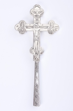 Крест напрестольный водосвятный на ручке гравировка серебро (УИН)