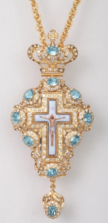 Крест архиерейский №8 / золочение / серебро эмаль, финифть / круглая / (УИН)