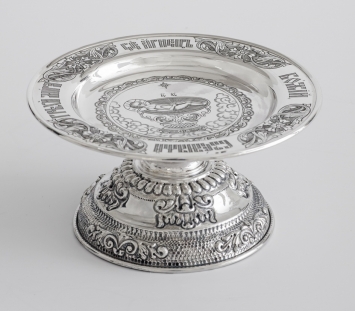 Дискос с поддискосником ручная гравировка, чеканка / ф180мм-потир 0,3л"№12" / серебро (УИН)