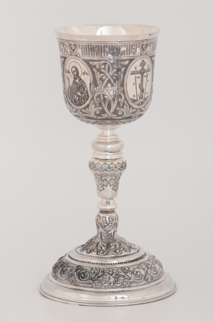 Потир 1.0л ручная гравировка с 4мя-ликами, чеканка "№1" серебро (УИН)