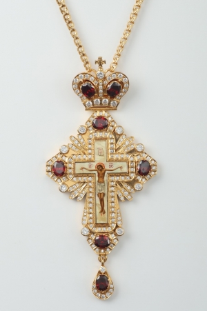 Крест архиерейский №183 / Фианиты / золочение / серебро эмаль (УИН)