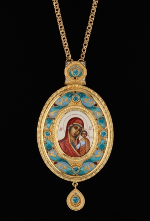 Панагия №146 / золочение / серебро филигрань, эмаль Казанская БМ (УИН)