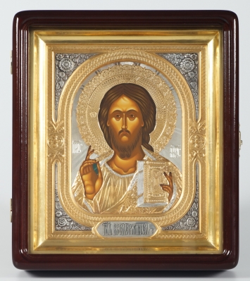 Икона в штампованном окладе 18*24 серебро / киот / золочение / Господь Вседержитель (УИН)