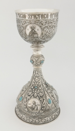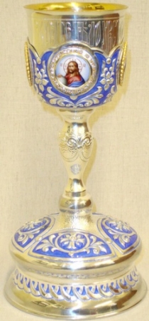 Потир 1.0л 4-финифти, филигрань, эмаль, роспись / золочение / серебряный стакан (УИН)