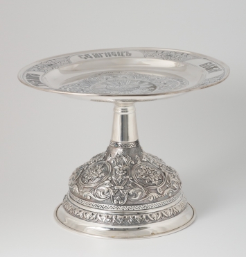 Потир 0.5л 4-финифти, чеканка, эмаль / поддон старого образца / серебро (УИН)
