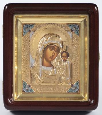 Икона живописная в гальванопластической ризе 18*24 серебро / киот / Казанская БМ (УИН)