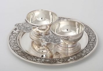 Набор / блюдо -ф240мм+ 2 ковша / ручная гравировка серебро (УИН)