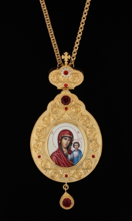Панагия №1517 / золочение / серебро живопись, филигрань, эмаль Достойно Есть (УИН)