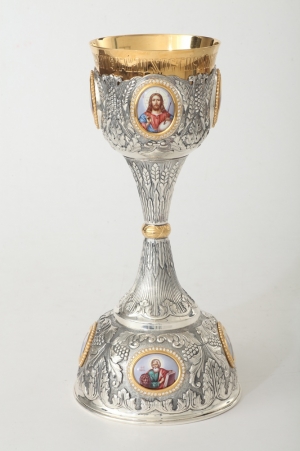 Потир 0.8л 4-финифти, филигрань, эмаль, роспись, литьевые накладки / золочение / серебро (УИН)