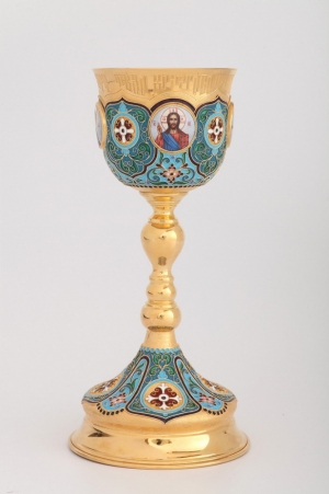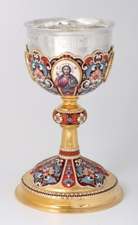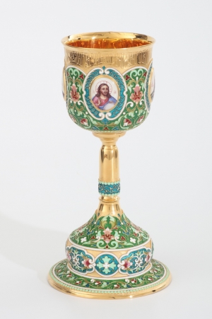 Потир 0.75л 4-финифти, филигрань, эмаль, роспись / поддон старого образца / золочение / серебряный стакан (УИН)