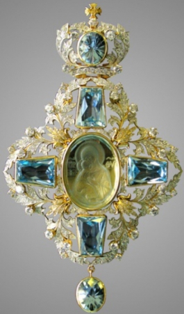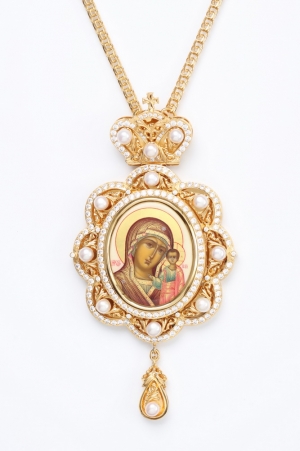 Панагия №193 / Фианиты, финифть / золочение / серебро Казанская БМ (УИН)