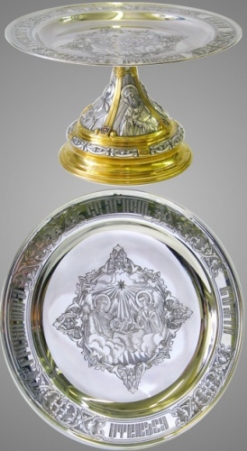 Дискос с поддискосником ручная гравировка, чеканка с пророками / ф240мм-конус потира 0,5л / золочение / серебро (УИН)