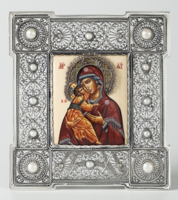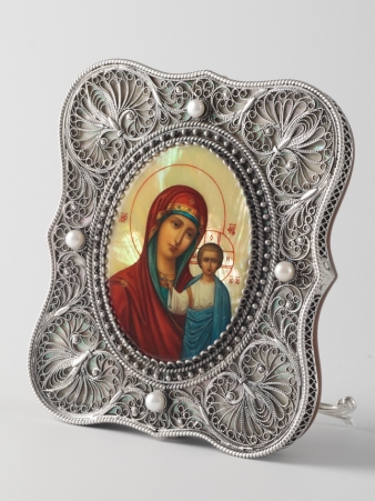 Икона именная №38 живопись, филигрань в деревянной рамке, серебро Казанская БМ (УИН)