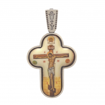 Крест наперсный №1566 / Фианиты живопись, филигрань.эмаль / золочение / серебро (УИН 6432500785219850)