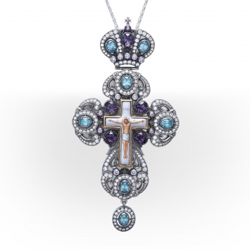 Крест архиерейский №1524 / Фианиты / золочение / серебро финифть (УИН)