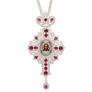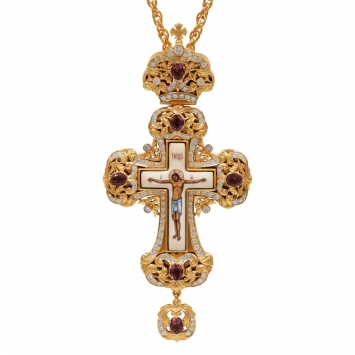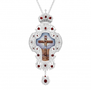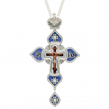 Крест наперсный №224 / Фианиты финифть, эмаль / золочение / серебро (УИН)
