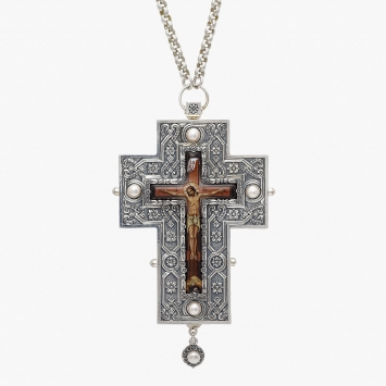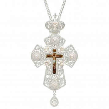 Крест наперсный №1279 / Фианиты / золочение / серебро деколь (УИН)