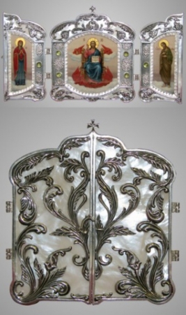 Икона настольная №32 / Фианит серебро финифть, эмаль / золочение / (УИН)