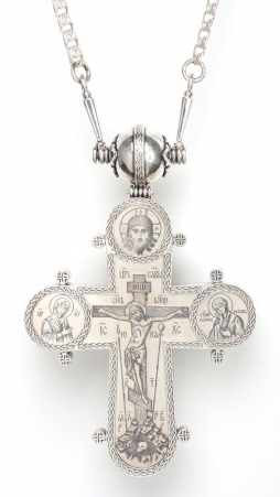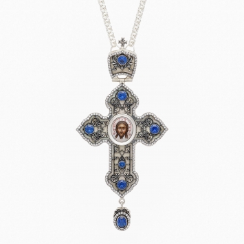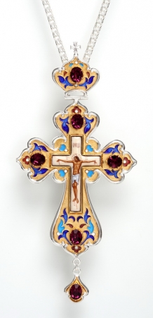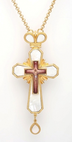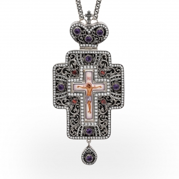 Крест архиерейский №1524 / Фианиты серебро финифть перламутр (УИН)