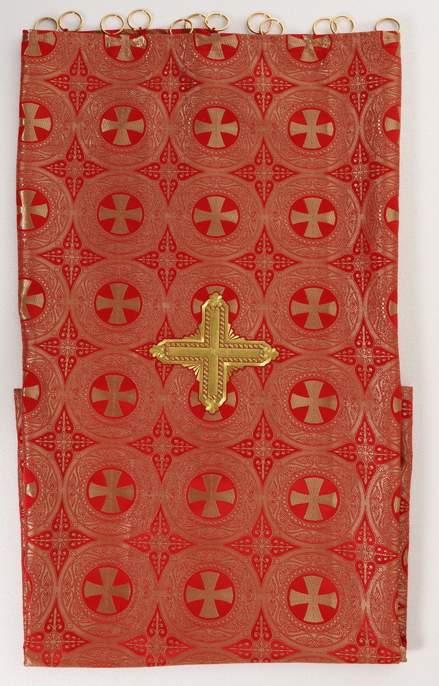 Завеса на Царские врата выполнена из церковного шелка. Декоративный элемент - крест (автоматическая вышивка). Доступно исполнение во всех богослужебных цветах. Для оформления заказа необходимо указать ширину и высоту завесы.